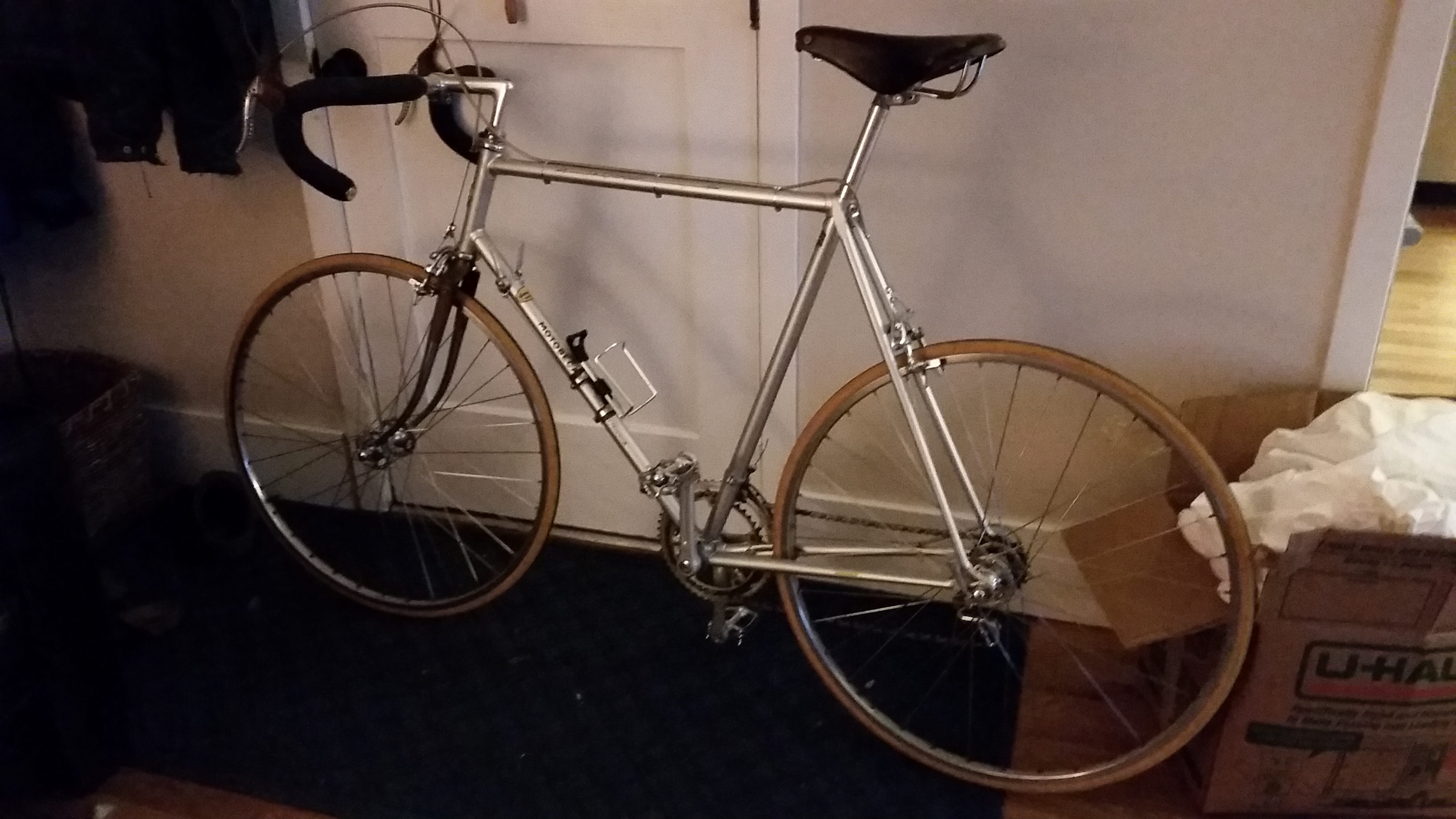 As bought (20 mm tires, Cinelli stem and bars, Mafac Competition brakes. | ||